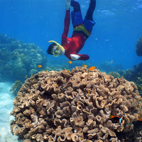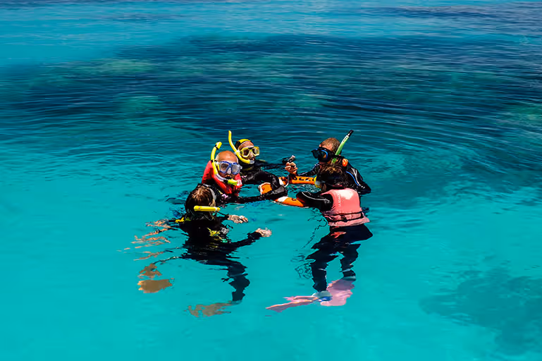 Snorkelling is the perfect way to explore the coral gardens and marine life of the Great Barrier Reef, suitable for first-time snorkellers and experienced swimmers alike. With easy beach access at Michaelmas Cay, families and visitors of all ages can snorkel together in the protected, shallow lagoon waters surrounding the cay.